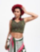 Mehandi Green Dabu Print Stretchable Spaghetti Blouse
